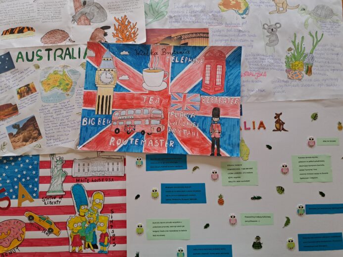 🥰🥰🥰Z okazji Dnia Języków Obcych w naszej szkole odbył się konkurs wiedzy o krajach anglojęzycznych. Uczniowie odpowiadali na pytania dotyczące geografii, kultury i tradycji, a także przygotowali barwne plansze tematyczne przedstawiające ciekawostki o wybranych państwach, ich symbolach oraz słynnych miejscach. Główną nagrodą były pizze dla całej klasy zwycięzców, co dodatkowo zmotywowało uczniów do udziału i wspólnej zabawy.🥰🥰🥰